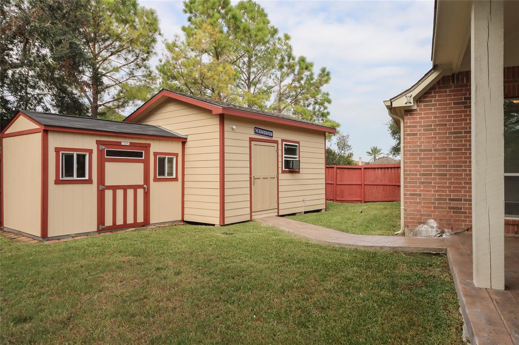 This is a one story Perry home that has been updated with outdoor entertaining in mind. The expansive corner lot features an oversized covered patio in the backyard that is the perfect place to relax or host family and friends for those special occasions. This beautiful home boasts a custom-built outdoor building that can be a gameroom for the kids, a she-shed for the Mrs. or the ultimate mancave. From the high ceilings and flowing foyer that greet you at the entrance to the primary suite with dual sinks and a separate tub and shower, you will love this beautiful home and its smart well thought out floorplan. This home is move in ready with fresh paint, recent flooring, and other updates. The fridge and the handy storage shed will remain. There is no need to worry about high insurance prices as a new roof will be installed with a full price offer!