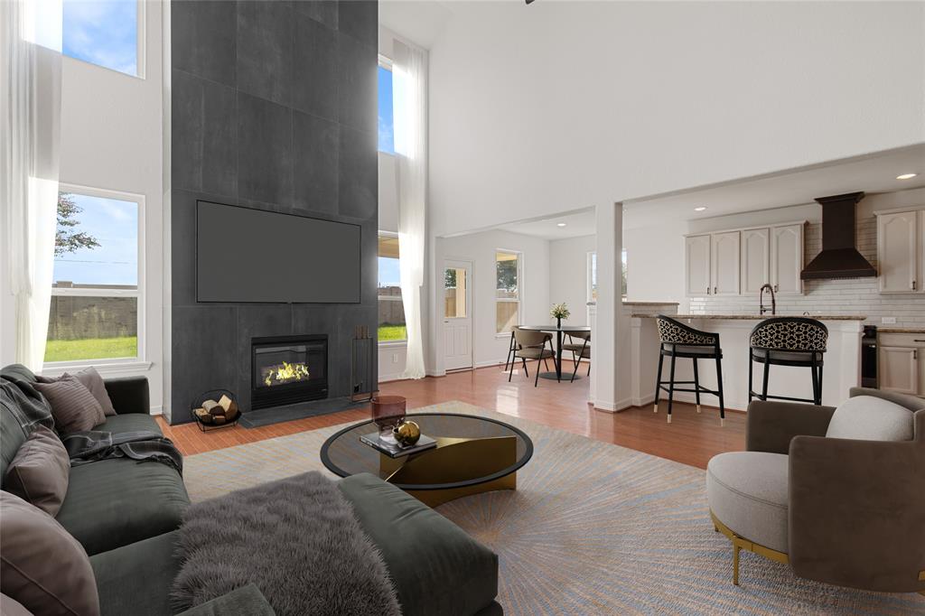 A former model home meticulously upgraded! The location is ideal & has no thru traffic. It sits on an expansive lot as you enter the culdesac & curb appeal introduces the home.The home rivals new builds in its size & price-point.The custom floor to ceiling fireplace enhances the Industrial modern feel of the interior. Abounds w/ hardwood floors, porcelain,granite & quartz The primary bath is spa quality & boast dual sinks, a stand alone tub & seperate shower.The chef in the family will love the kitchen with new fixtures. Upstairs is the gameroom & seperate media room with a projector, screen,built-in bar& mini fridge. This well equipped home has a sprinkler system, speakers throughout, water filtration @kitchen sink, washer & dryer, apoxy floors in the garage & much more! Buyer to verify all room sizes. Photos are great but in person its AH-mazing! Over 85k in upgrades on a 12,000 sqft. Lot and the price has ben reduced from the original list price by 25k. This is a steal of a deal!